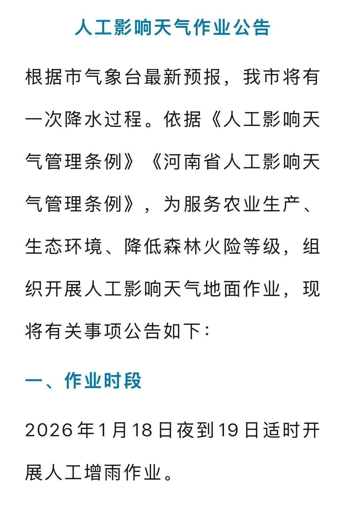 安阳市东说念主工影响天气中心发布公告(图片开首:安阳融媒)