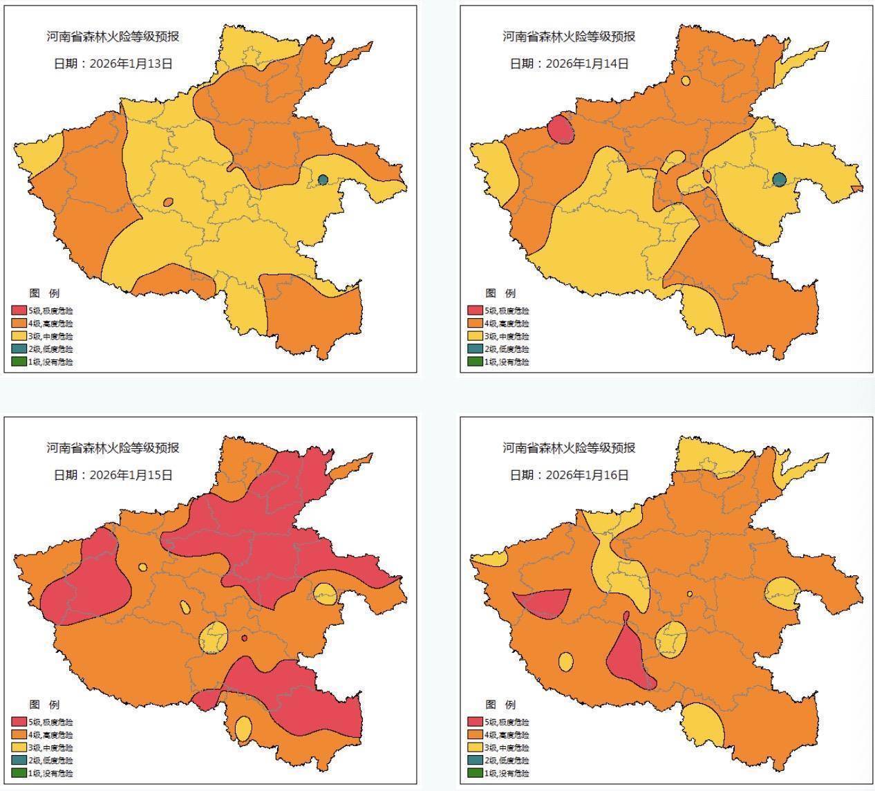 据河南时势1月13日发布的信息,从13日起四天,河南省丛林火险时势等第较高,辅导公众留意用火用电安全,防范失火的发生。